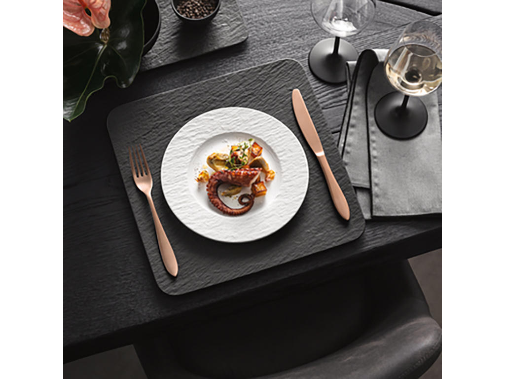 Denne serie er et must-have for et sofistikeret look på din borddækning. De mørke dekorative elementer får elegante hvide tallerkener til at stråle og skaber en attraktiv kontrast. Uanset om du vælger granit eller skiferlook, vil The Rock skabe en iøjnefaldende effekt på dit bord.